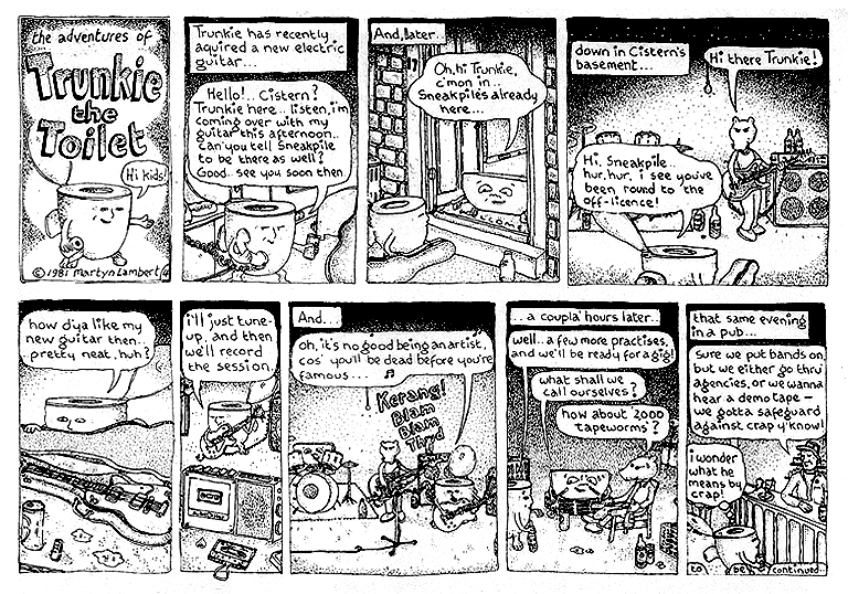 Trunkie the Toilet and his friends from the hallowed pages of Flexipop!