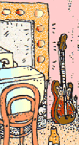 Sneakpile is the musicologist in the band and quite at home in Trunkie's basement, working on chord progressions for new tunes.